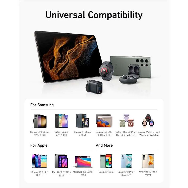 Powered by GaN Technology: With higher energy efficiency and upgraded heat dissipation, Gallium Nitride (GaN) makes our chargers smaller and safer without sacrificing a drop of power.