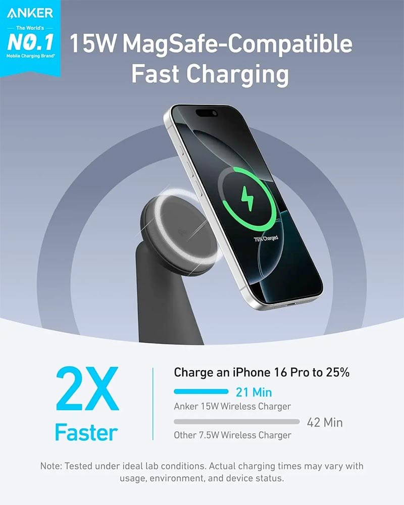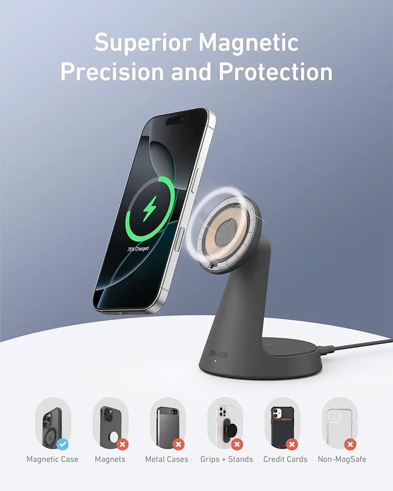 Anker MagGo Wireless Charger (15W, 2-in-1, Dock Stand) – Fast, Versatile & Stylish Charging!