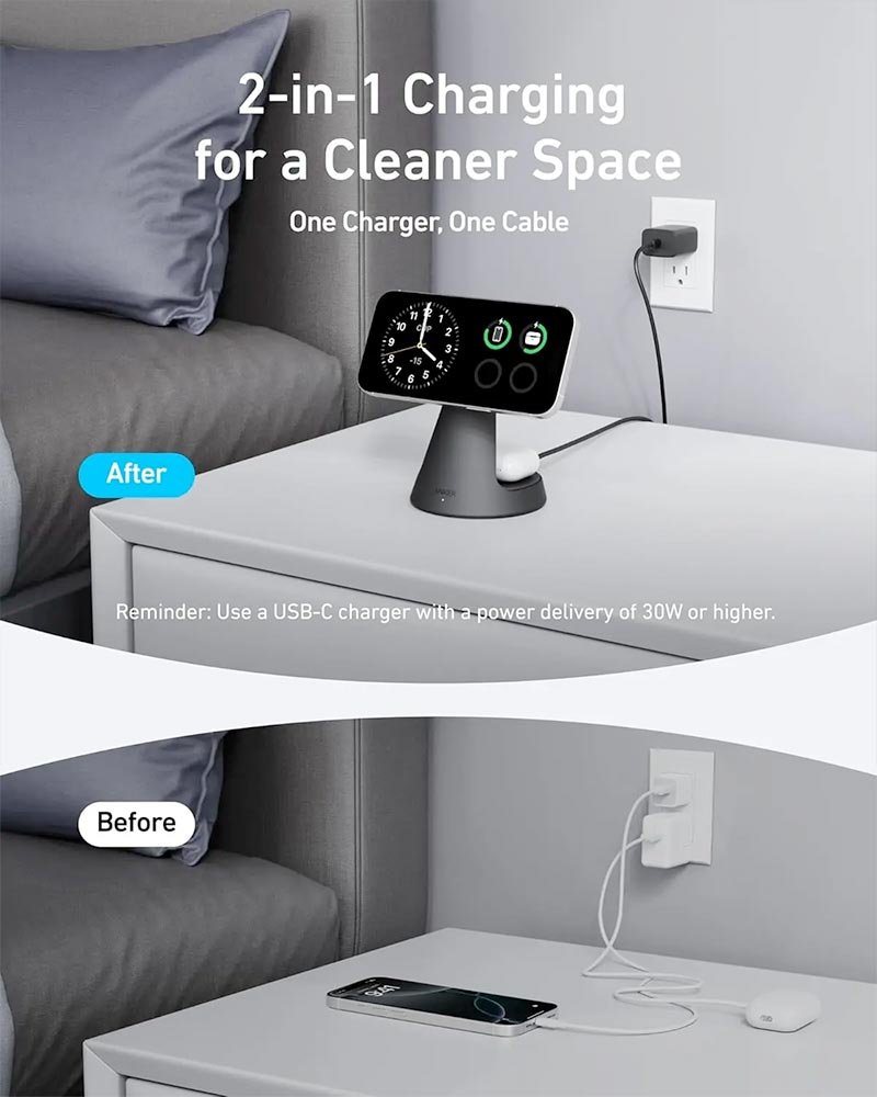 - 2-in-1 Design: Charge both your iPhone and AirPods simultaneously.
