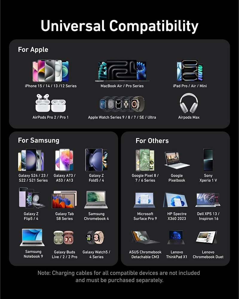 • Each USB-C Supports 100W Max: When using two USB-C ports simultaneously, each can provide up to 100W of power, transforming charging times for high-demand devices. Charge two 14″ MacBook Pros to 50% in just 28 minutes.
