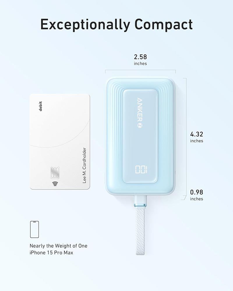 Anker Zolo Power Bank (10K, 30W) with a 5.4-inch (13.7 cm) built-in USB-C cable.