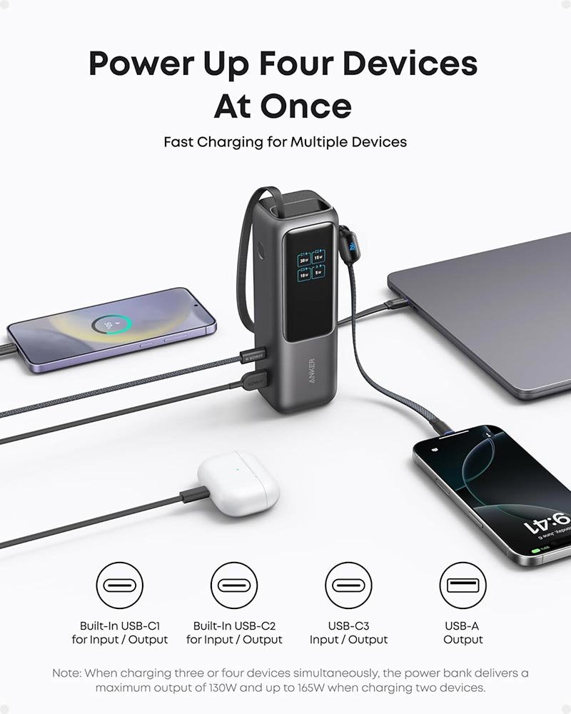 • Anker Zolo Power Bank (25,000mAh, 165W, Built-in Retractable Cables) – A1695P11 – Black