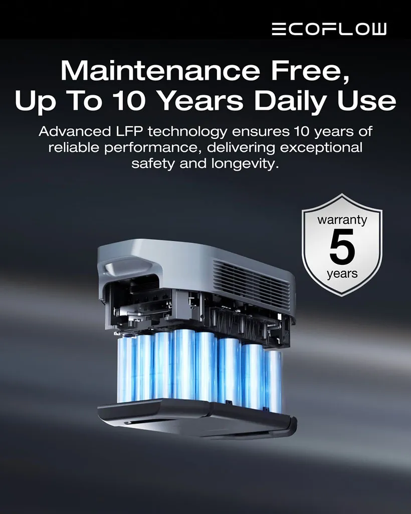 • Long-Life LiFePO₄ Battery — over 4,000 charge cycles to 80% capacity