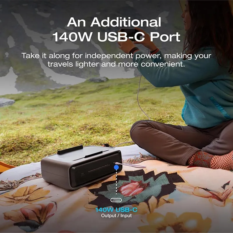 • 140W USB-C Port: Equipped with a 140W USB-C port, the RIVER 3 Plus Extra Battery offers additional input and output flexibility. Carry it independently for on-the-go power, reducing your travel load while keeping essential devices charged.