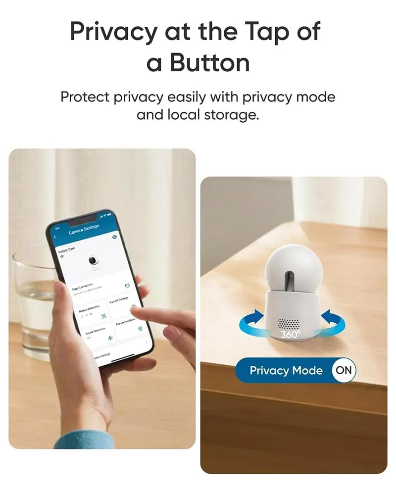 • Special Features: Motion Tracking, Instant Alerts, Privacy Mode, and Built-in Spotlight
