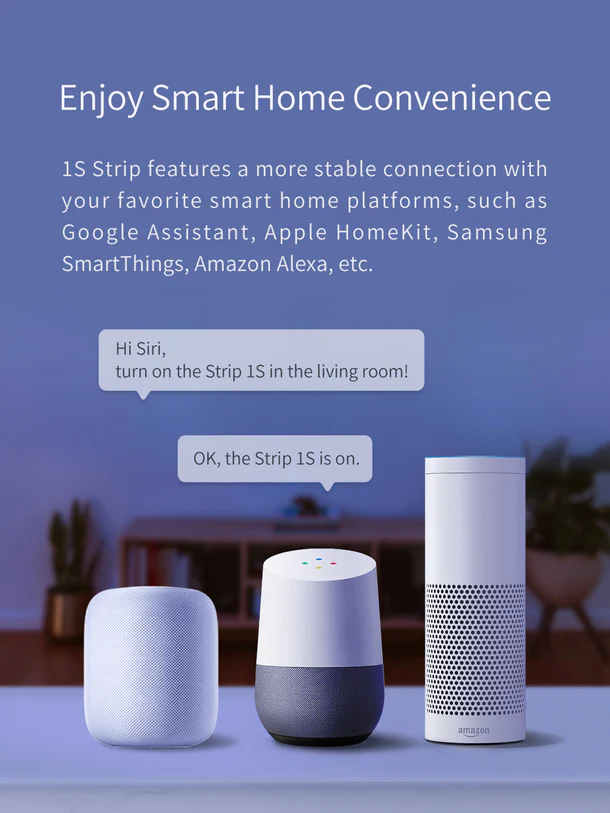 • Voice Control: Google Assistant, Amazon Alexa, Apple HomeKit